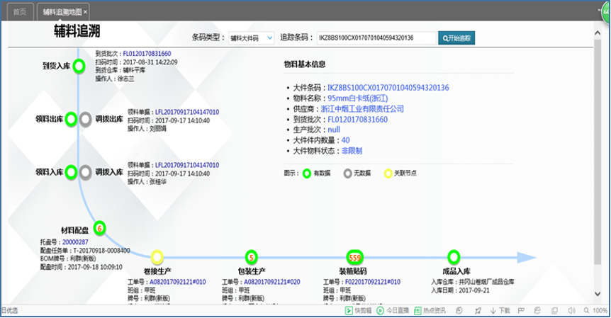 ● 批次管理:原料批次、辅料批次、糖香料批次、成品批次管理、制丝批次、成型批次、卷包批次;